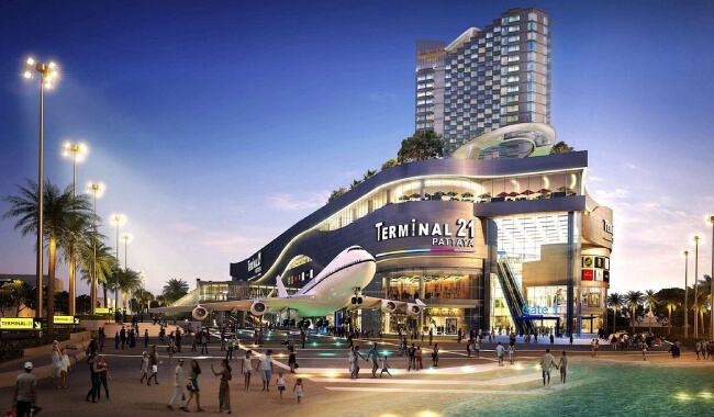 經過北芭達雅區,遠遠就看到門口的大飛機,整棟大樓以機場航站為概念來打造,源自於曼谷Terminal21百貨,芭達雅的新分館來個超級大升級,更成為著名打卡地標。