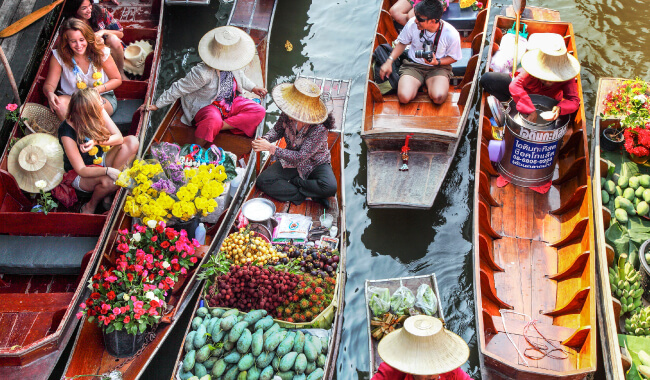 水上貿易不僅撐起了一個個家庭與生活、也帶動了地方的繁榮,是最接近泰人水上傳統生活型態的回顧,沿岸不妨一路吃喝採買。
