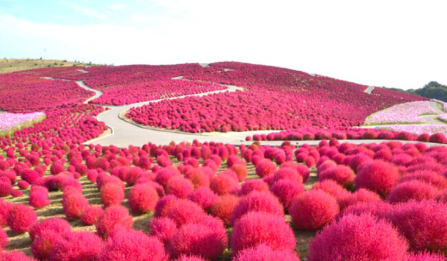 被CNN評選為「日本最美31景」之一,每年10月,約32,000株掃帚草將「見晴之丘」染成壯觀紅海。從夏季翠綠到秋日紅葉,再轉為深秋茶色,層層遞進的色彩令人屏息。掃帚草花語象徵「幸福生活」、「夫婦和睦」,更被視為風水吉植,為家庭帶來好運與和諧。