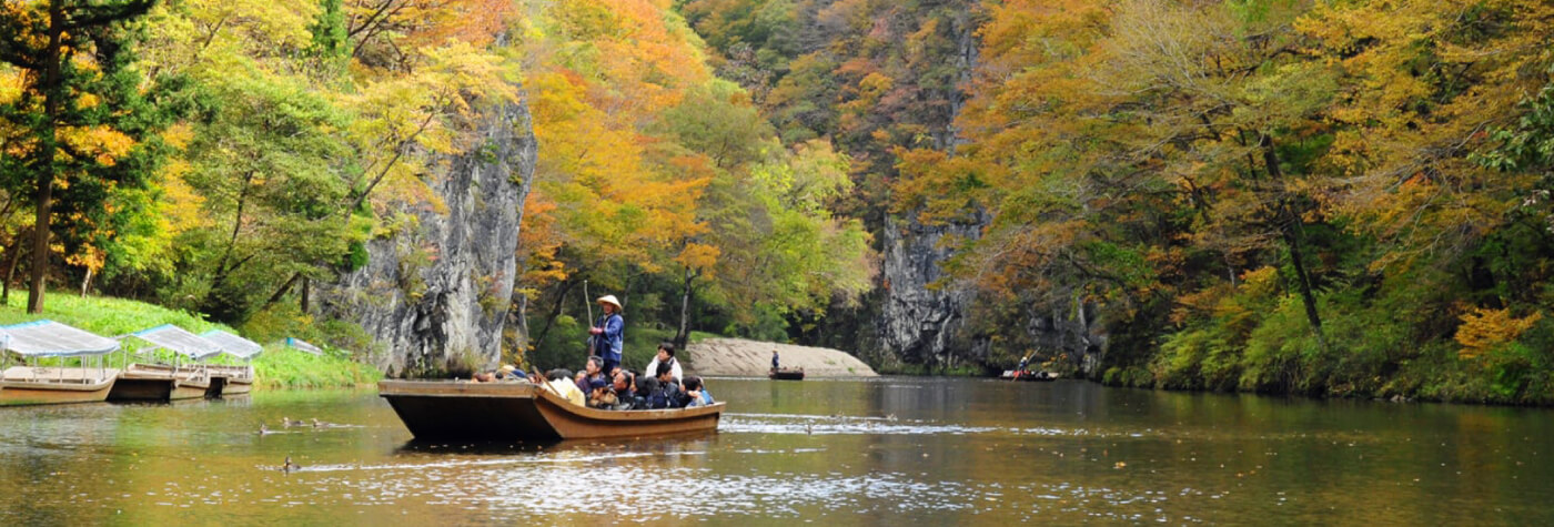 綿延約二公里沿路上展開了一連串的自然藝術品,巨石經長年急流侵蝕而創造出大大小四十八座瀑布景觀,溪谷也因多樣化的侵蝕,讓人感受到自然界的嚴苛與柔和。高達一百米連綿不絕的懸崖峭壁楓葉紅黃綠交錯遍佈,聆聽著響徹溪谷的船家歌謠,乘坐小舟順流而下,真是美不勝收。