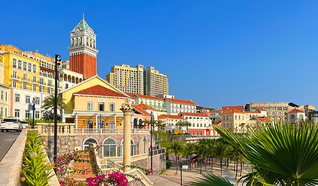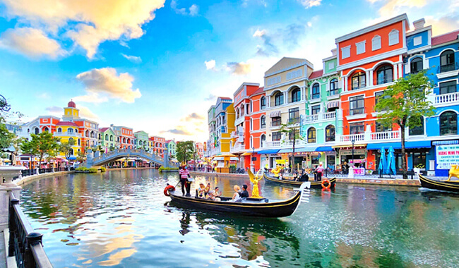 富國⼤世界不容錯過的體驗,乘坐在貢多拉義式⼩船中,徜徉於威尼斯運河上,沿途欣賞繽紛浪漫多彩的河岸風光,偶爾⽿畔傳來即興的歌劇聲。