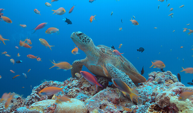 還可看到成群美麗的熱帶魚及逗趣的小丑魚、等美麗的海洋生物,形成一幅美麗的畫,繽紛的珊瑚、各式的魚群等著你餵食,好有趣。