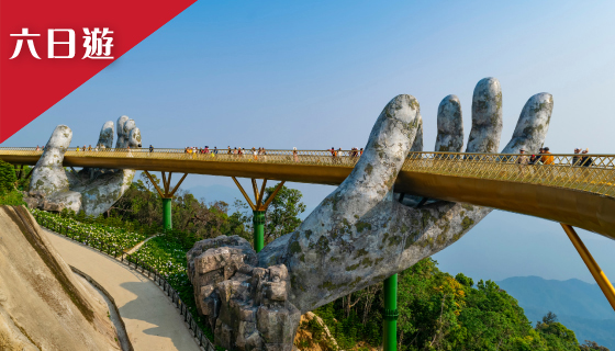 【自由行】特別安排機場接送&舒適住宿,可自由安排暢遊峴港與會安中西文化融合的特色景點,走訪火紅金色佛手橋、一覽巴拿山美景。