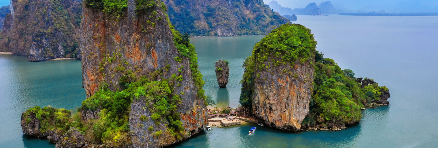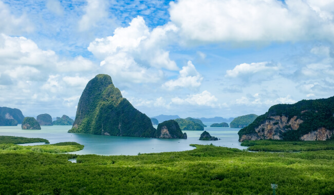 位於泰國攀牙府一處海灣為石灰岩地質,接臨安達曼海,有著「泰國小桂林之稱」,這裡遍佈著數以百計且形態奇特的石灰岩小島。