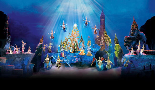 普吉島暹羅夢幻劇場演出包含三幕,結合了泰式舞蹈、武術和雜技,展現了泰國豐富的傳統和藝術表現。由超過100位演員呈現,搭配上令人驚嘆的佈景設計,將戲劇、音樂、舞蹈完美的融為一體,是個會令人難以忘懷的演出。